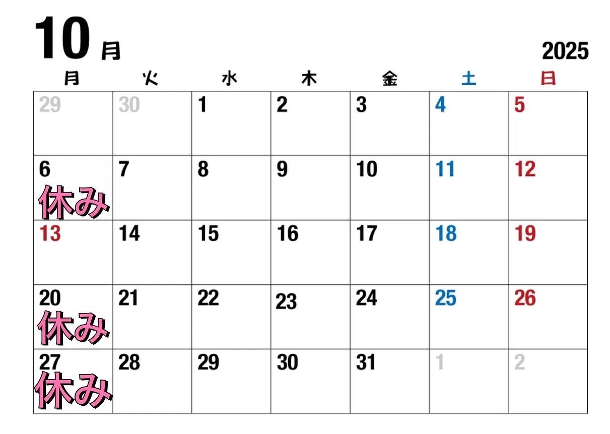 🌺10月のお休み🌺